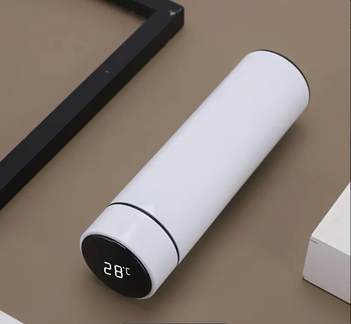 Termos smart cu afisaj led , afisarea temperaturii, pastreaza bautura fierbinte sau rece timp de 12 ore, otel inoxidabil, capacitate 500 ml alb