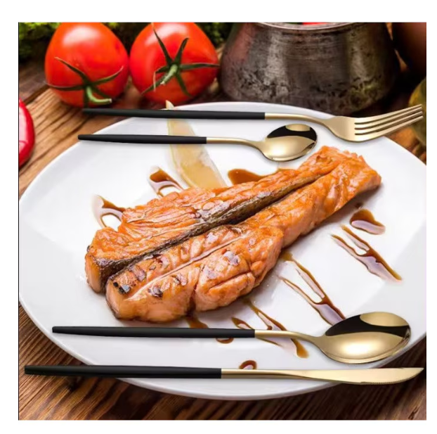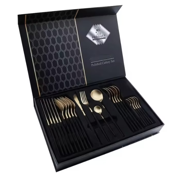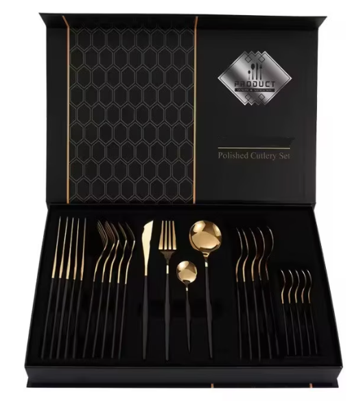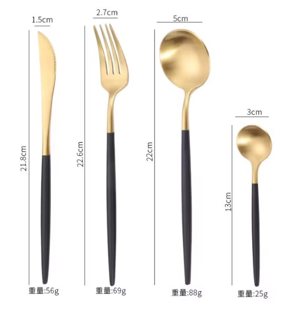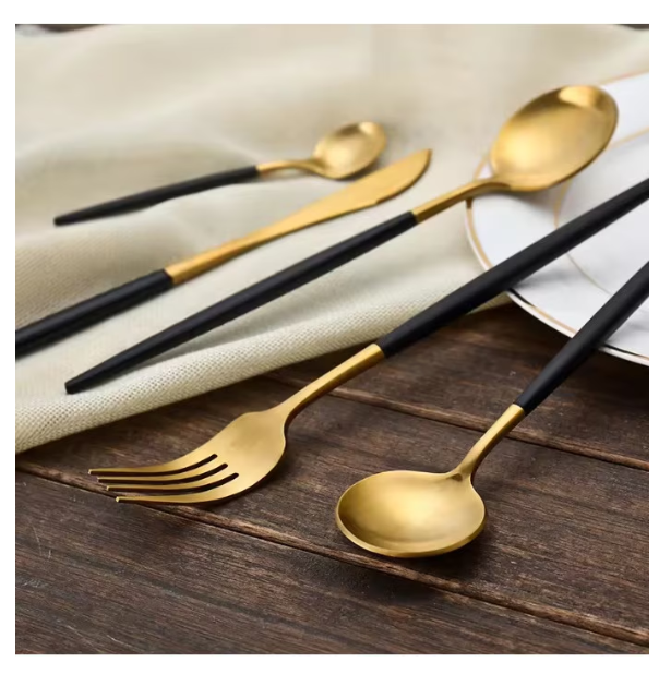 Set tacamuri in stil portughez 24 piese, otel inoxidabil, auriu/negru