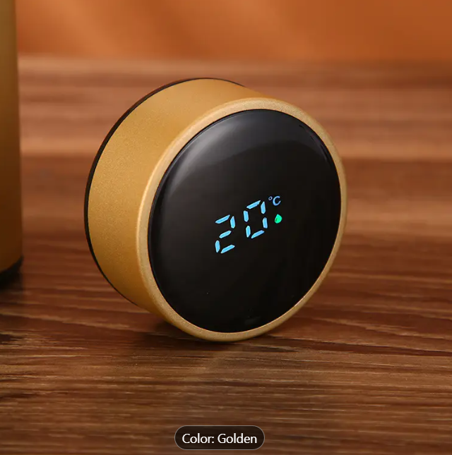 Termos smart cu afisaj led , afisarea temperaturii, pastreaza bautura fierbinte sau rece timp de 12 ore, otel inoxidabil, capacitate 500 ml Auriu